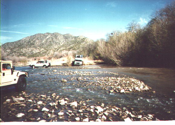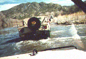 Fording the Gila River (as seen from inside our Hummer).