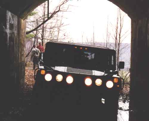 some abandoned mine entrances. Using the lights from Hal’s truck to peer