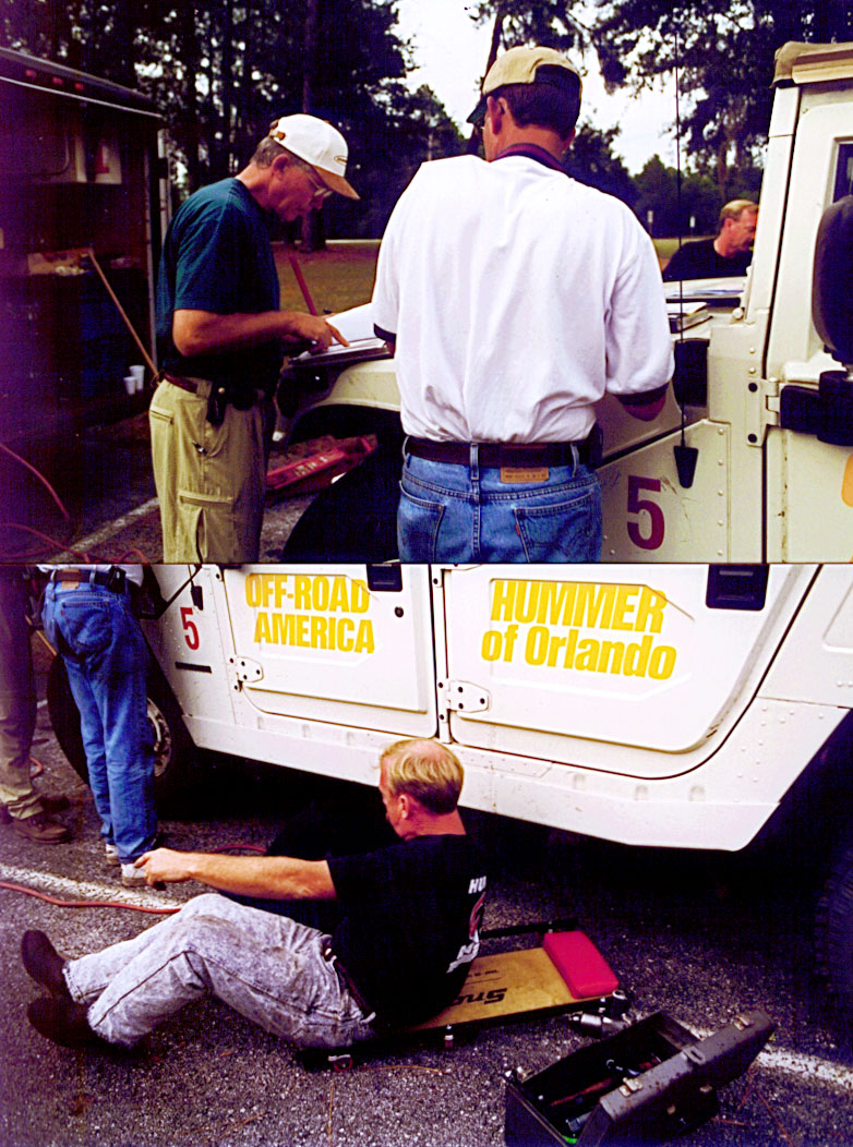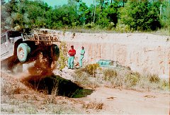 | The 1997 Hummer Challenge was the first of its kind. It was organized by Bob Hazel, with help from Hal Johnson. Bob Hazel did a marvelous job. He was always out there and kept in touch with all of us. He pulled this off with great sponsors, including Off-Road America and Hummer of Orlando. He is smiling here on the last day in the CLAY PIT of Ocala National Forest of Florida. |
