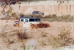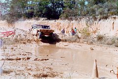| Hal Johnson decides to take a dip in the pool. He was much later in the trials. By now, the water is pure fine mud, about 3 foot deep. Most of the vehicles became airborn. |