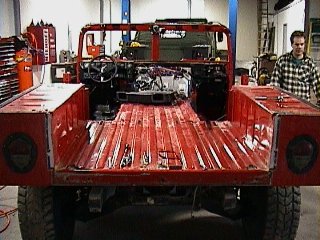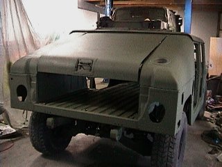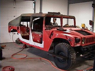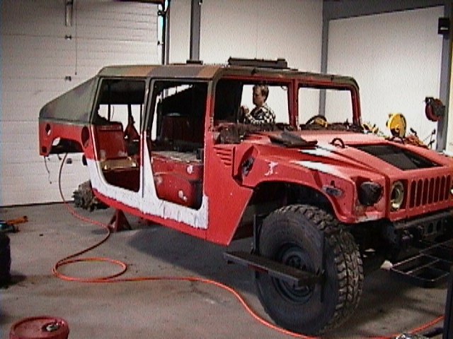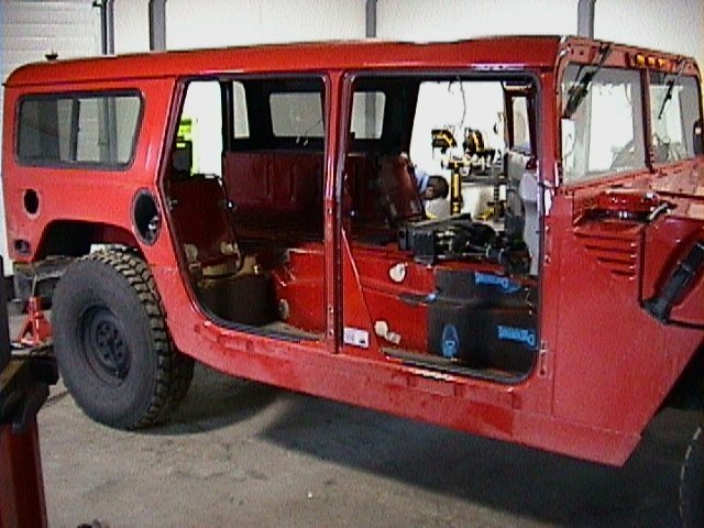 The Hummer was a 96 Turbo Diesel. The truck was pretty much gutted. We even went so far as to remove the seats and install the Humvee driver's captain seat and reinstalled the battery box for the passenger. Rear seats were also converted to mil. specs. Interior was a combination of the mil. interior padding and civi interior later to be dyed to match. Doors were also swapped. Jim Hill (HML) ended up with the doors from this truck, Tom kassab (HML) ended up with the barn doors. Interior parts are all over the US. I still have the wagon top. We do not "tweek" the vehicle. If a part does not fit, there is a reason. Just grab another.