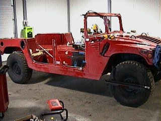 We converted the Humvee to 12V and installed a 502 HO with fuel injection 4l80E tranny, 242 T-case, 2in. lift and a lot of goodies!