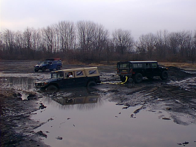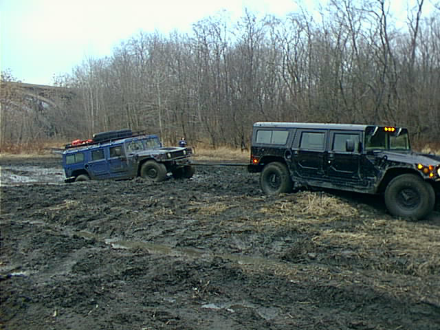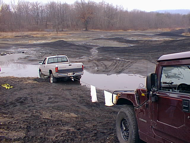 Here's the Dodge Ram being pulled out by one HUMMER which had to be